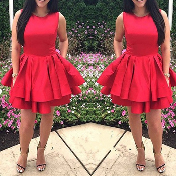 burgundy sleeveless fanshion dress,midi dress,satin jewel ruffles homecoming dress,SB0588
