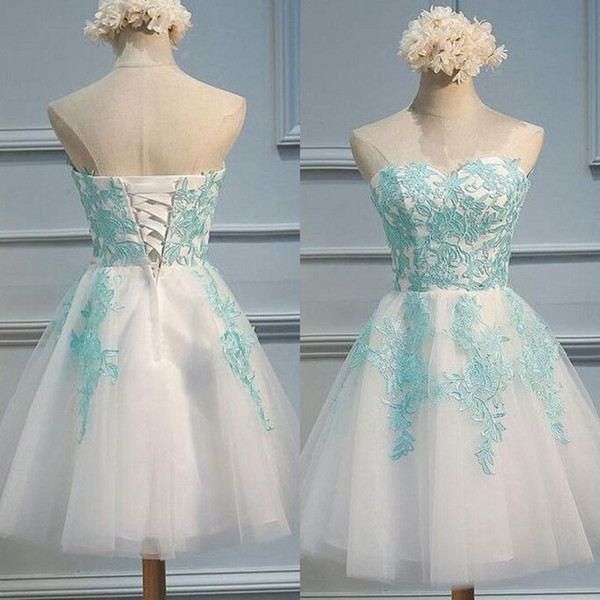 green tulle fanshion dress,strapless sweetheart applique homecoming dress,SB0596