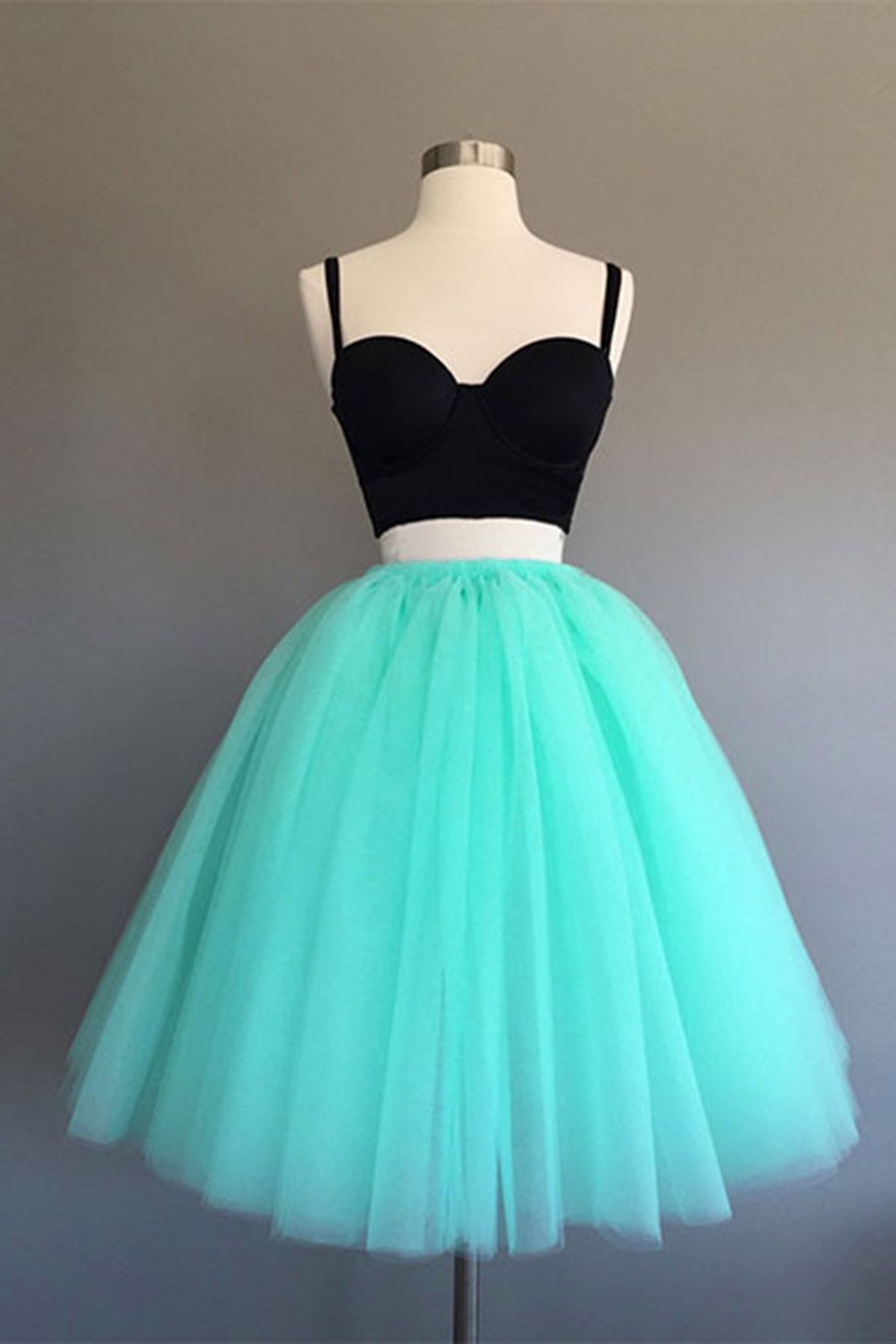 two piece green tulle mini fanshion dress,black sleeveless sweetheart homecoming dress,SB0609