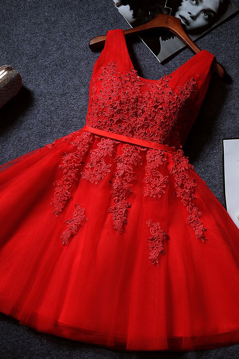 burgundy sleeveless tulle fanshion dress,midi dress,applique v-neck homecoming dress,SB0233