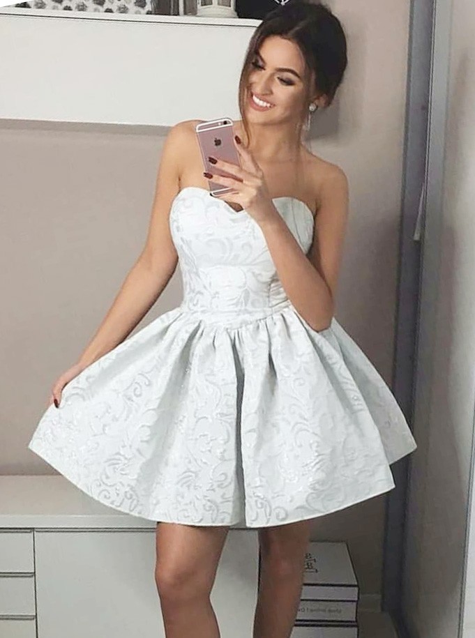 white applique fanshion dress,sweetheart strapless satin homecoming dress,SB0238