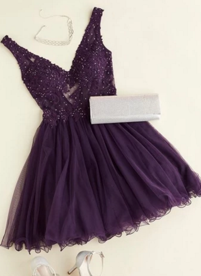 SB0706,purple sleeveless v-neck applique beaded homecoming dresses