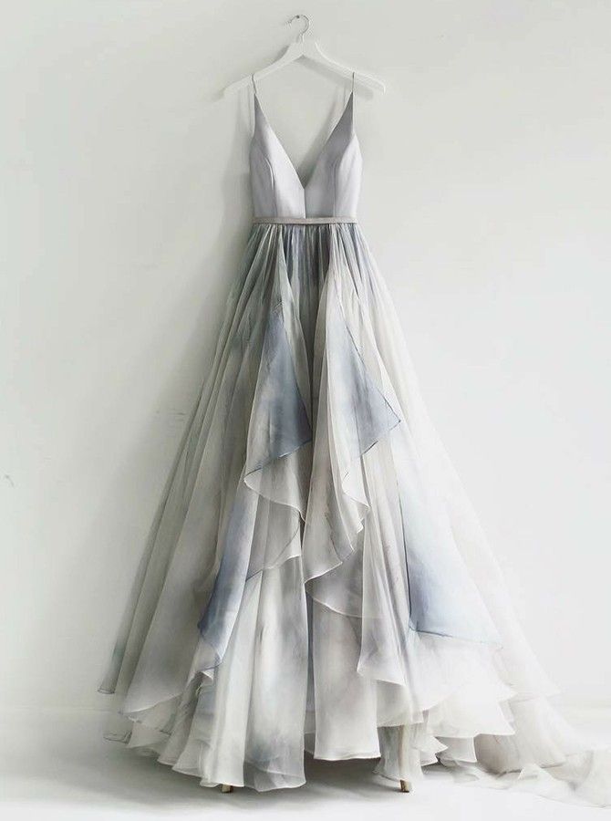 gray sleeveless v-neck prom dress,spaghetti-straps tulle backless evening dress,SB0214