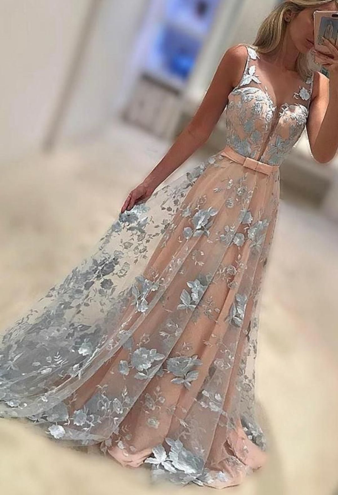 pink sleeveless lace prom dresses,satin applique bow-knot sweetheart long evening dress,SB0324