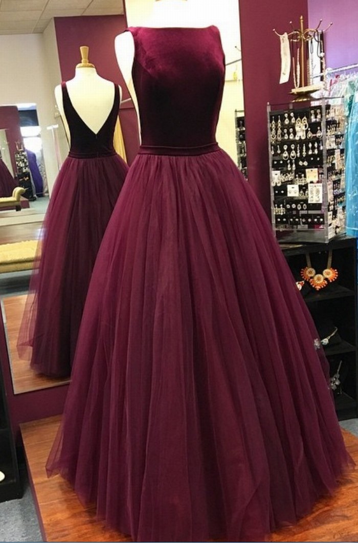 burgundy sleeveless jewel prom dresses women dresses,backless tulle evening dress,SB0364