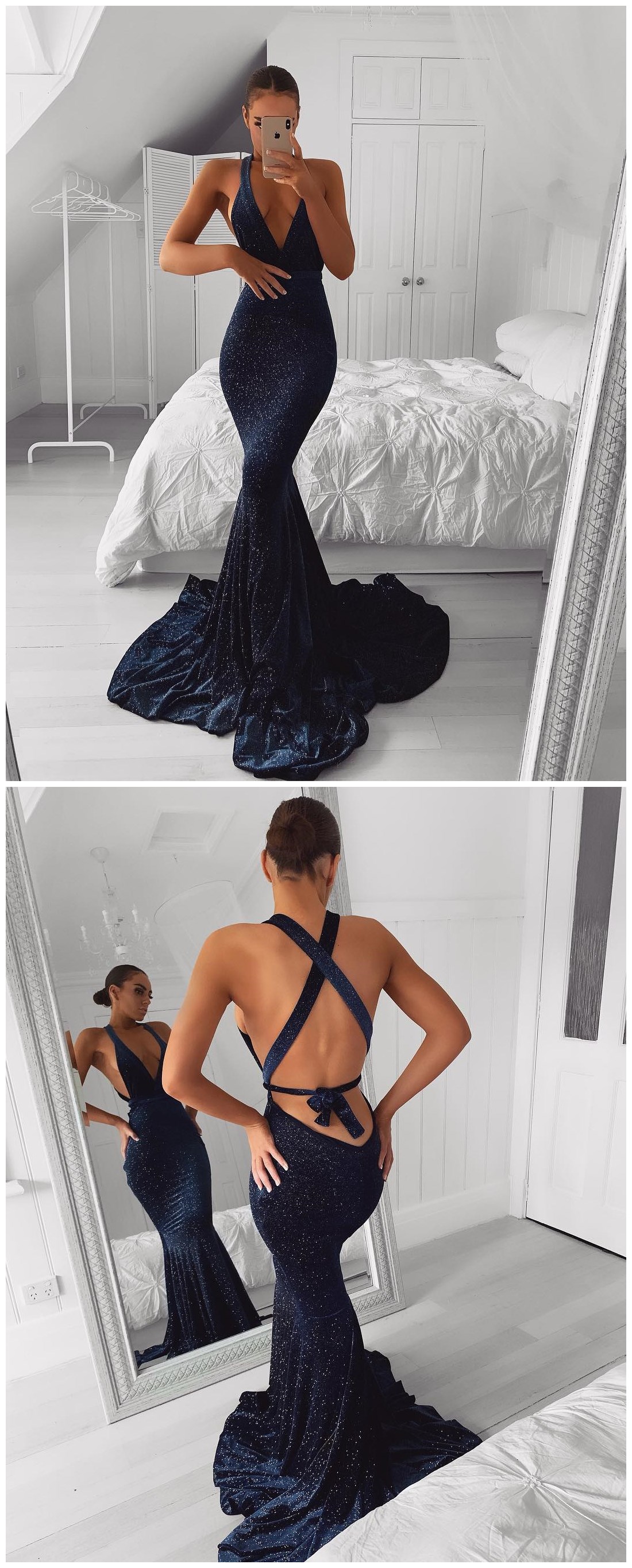 blue sleeveless v-neck prom dresses women dresses,backless racer-back sequins evening dress,SB0370
