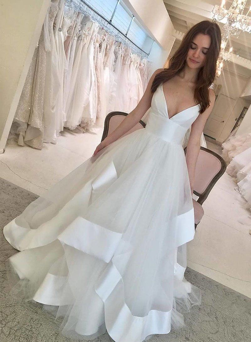 white tulle prom dresses women dresses,lace v-neck satin evening dress,SB0403
