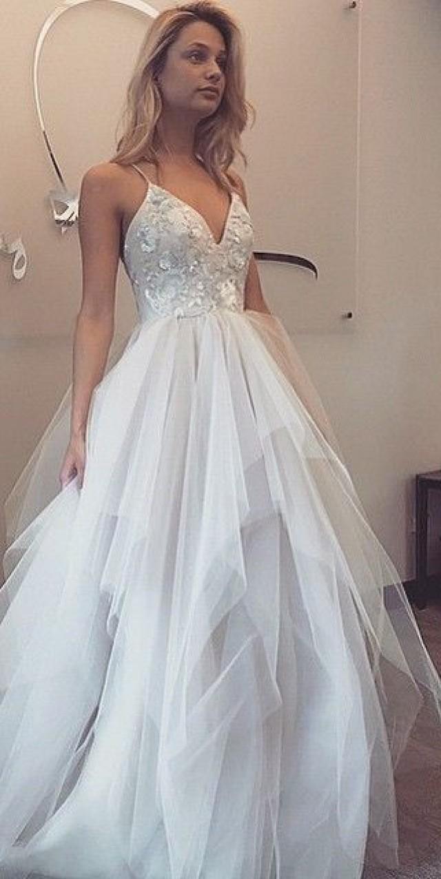 white applique v-neck tulle prom dresses women dresses,spaghetti-straps sleeveless evening dress,SB0423