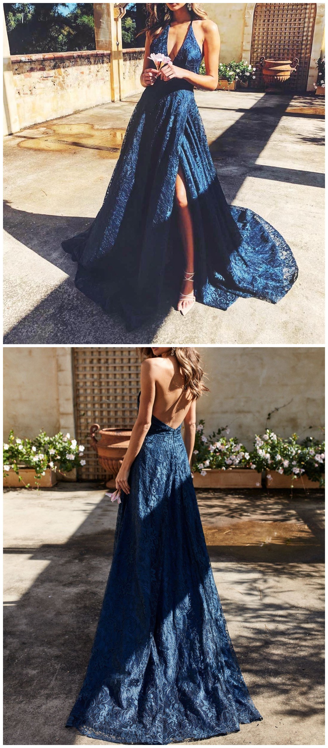 blue sleeveless applique prom dresses women dresses,halter v-neck lace tulle evening dress,SB0462