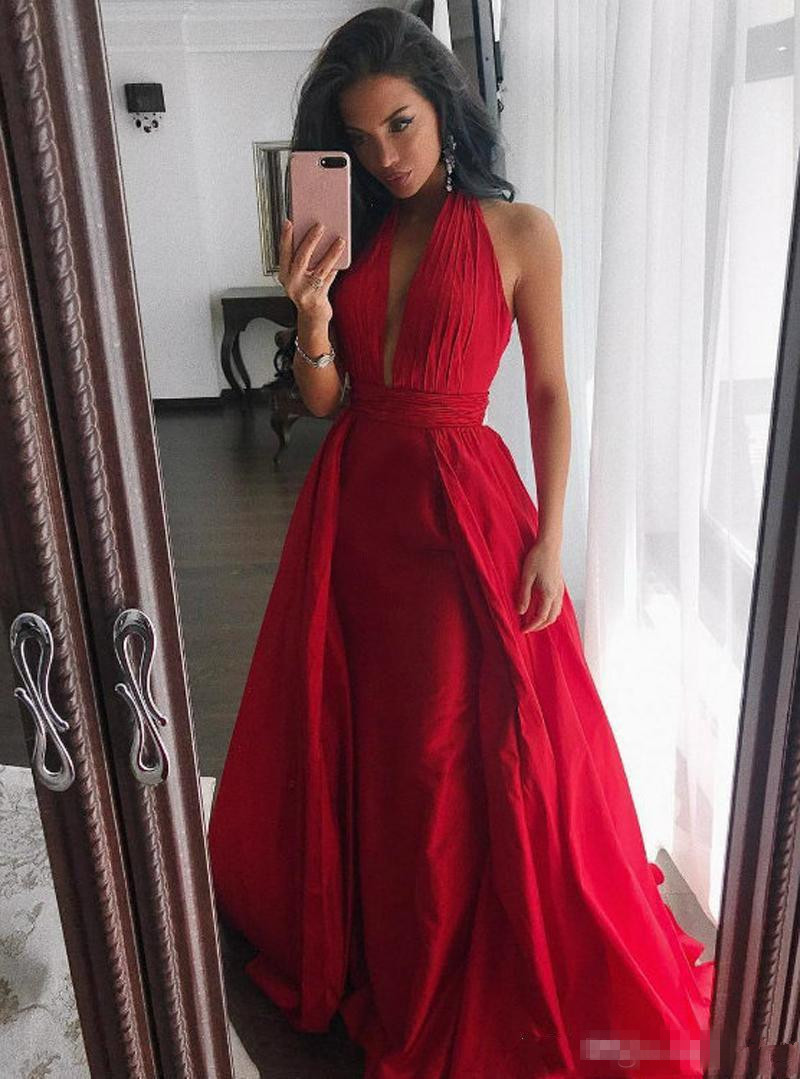 burgundy sleeveless prom dresses women dresses,halter v-neck satin evening dress,SB0500