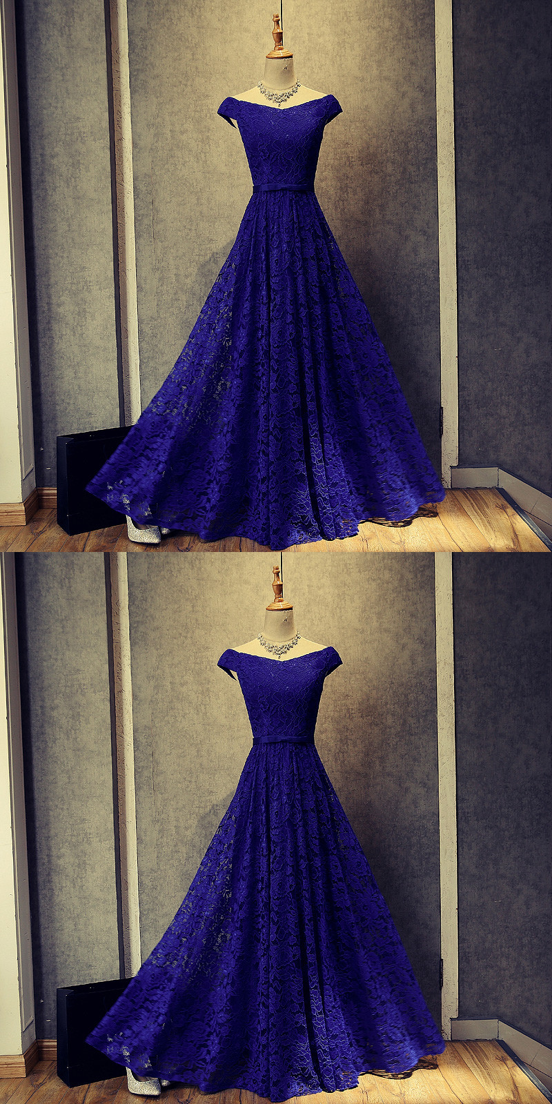 beautiful long blue off the shoulder v-neck prom dress,applique lace short sleeves evening dress,SB0505