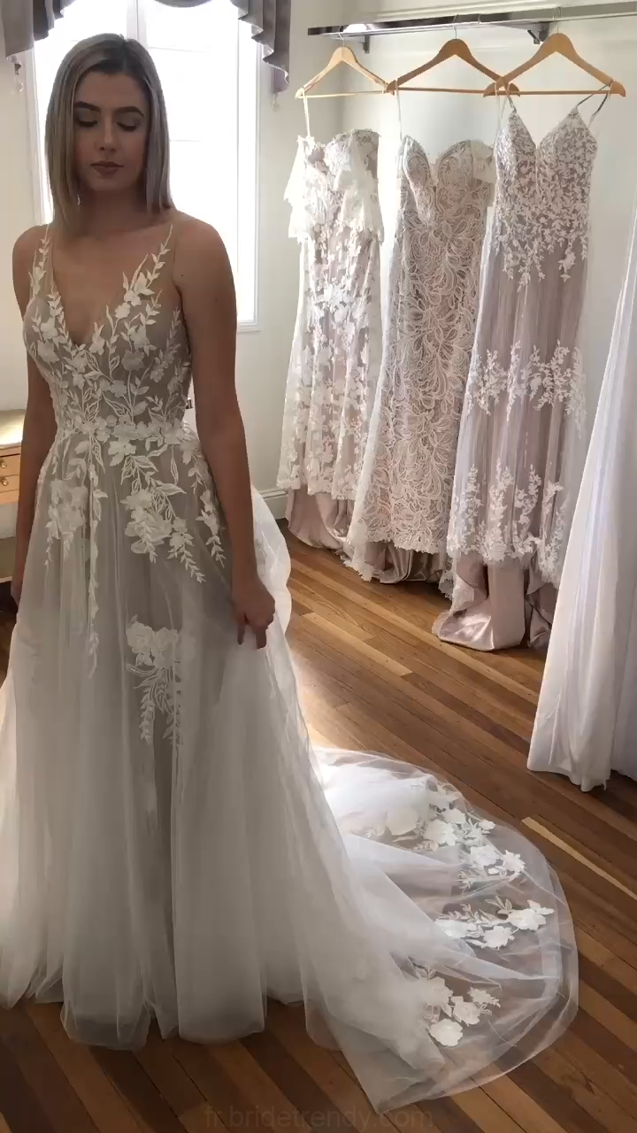 SB0660,sleeveless v-neck applique tulle lace wedding dress