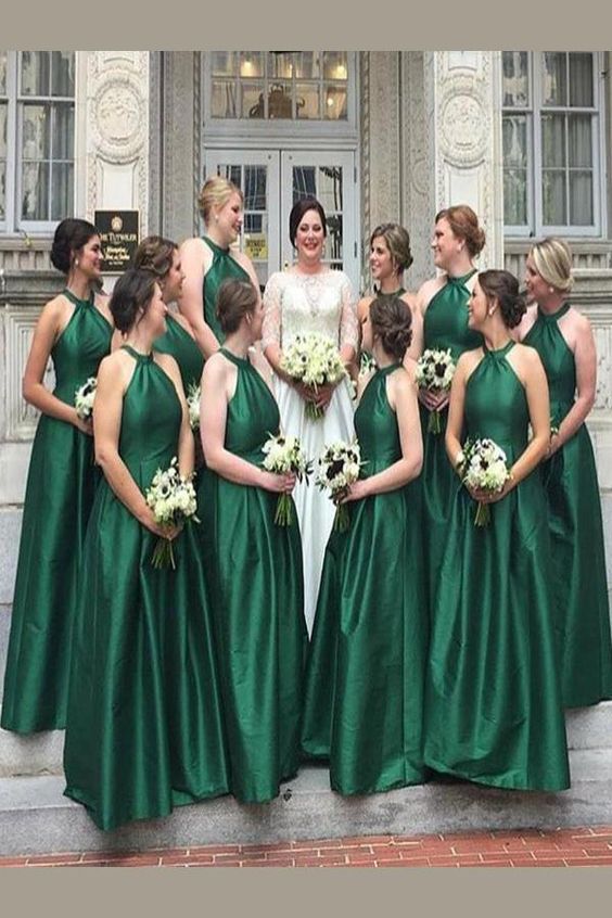 fashion light green sleeveless halter satin floor length bridesmaid dress,SB0220