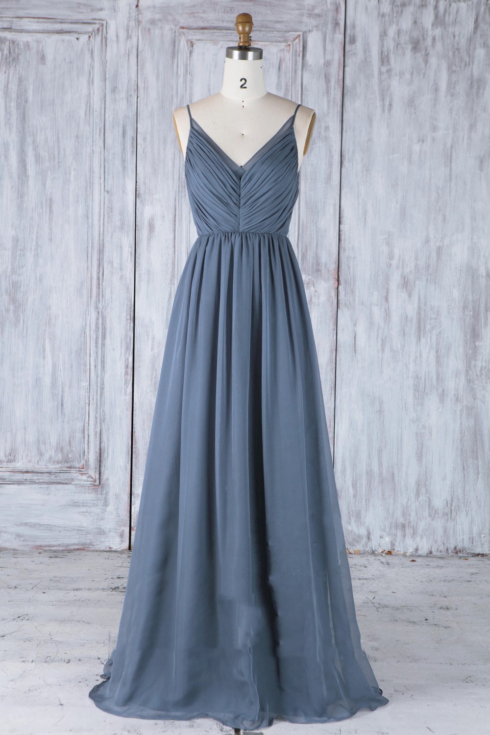 blue sleeveless spaghetti-straps chiffon backless floor length bridesmaid dress,SB0228