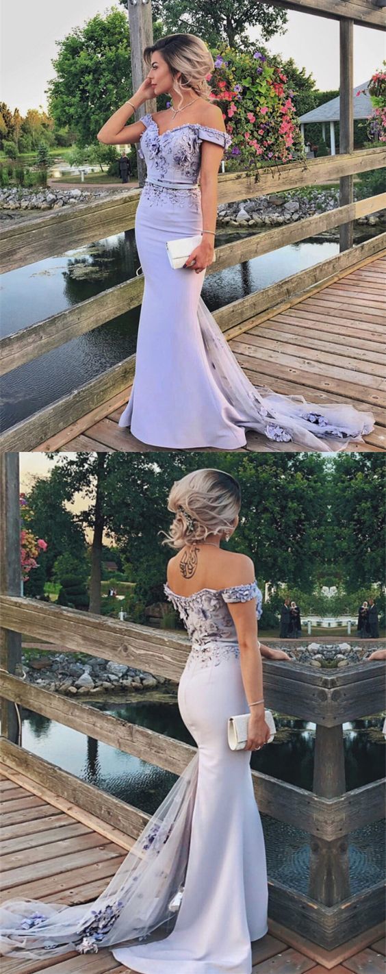 purpler off the shoulder v-neck women dresses,applique lace satin bridesmaid dress,SB0275