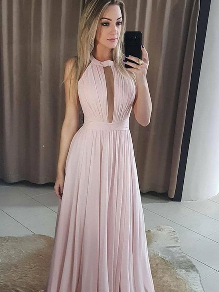 2020 beautiful pink sleeveless halter women dresses,chiffon bridesmaid dress,SB0270