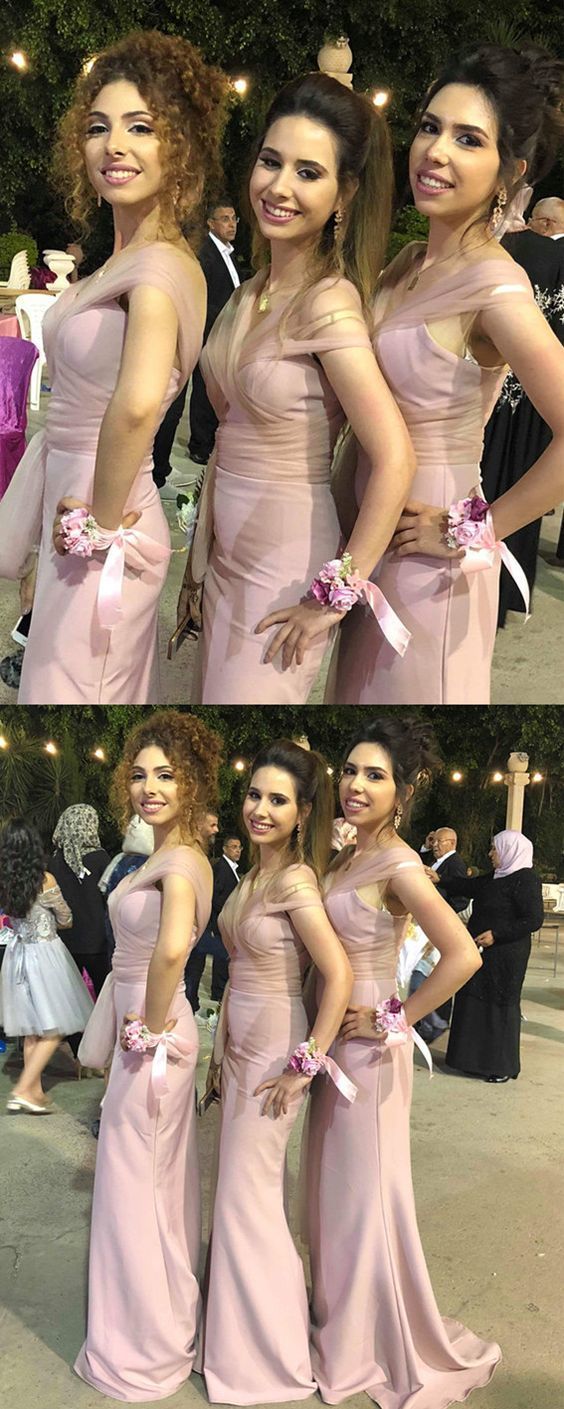 pink sleeveless v-neck women dresses,tulle satin bridesmaid dress,SB0286
