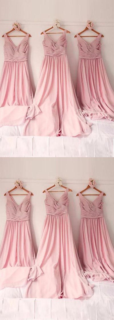 pink sleeveless women dresses,chiffon v-neck bridesmaid dress,SB0293