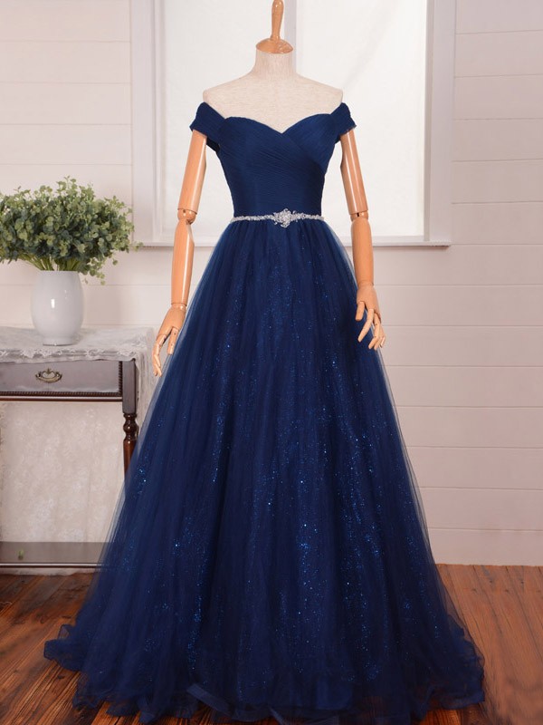 blue short sleeves prom dresses,v-neck tulle sequins evening dress with beaded,SB0338