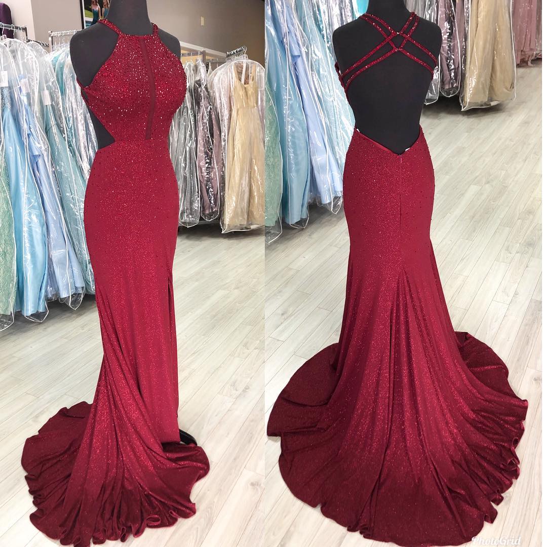 burgundy sleeveless sequins prom dress women dresses,backless spaghetti-straps evening dress,SB0378