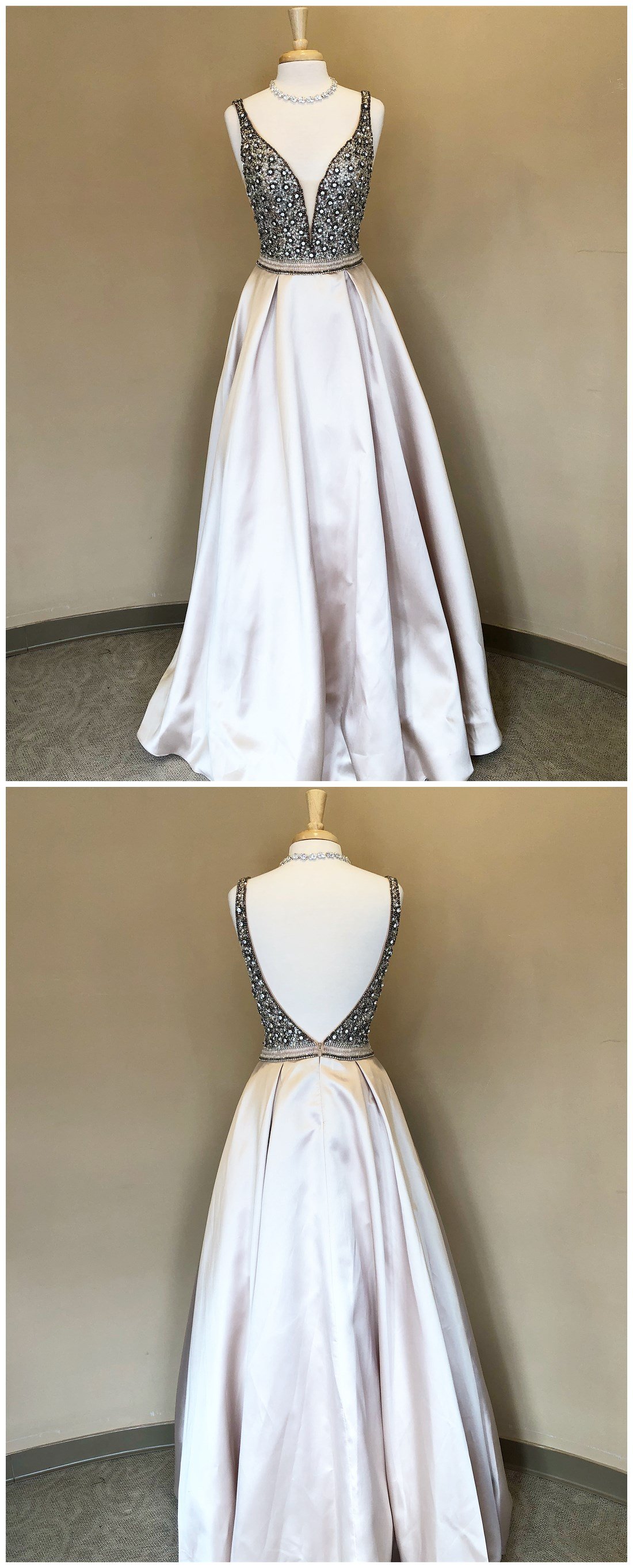 light satin sleeveless prom dresses women dresses,v-neck beaded spaghetti-straps backless evening dress,SB0382