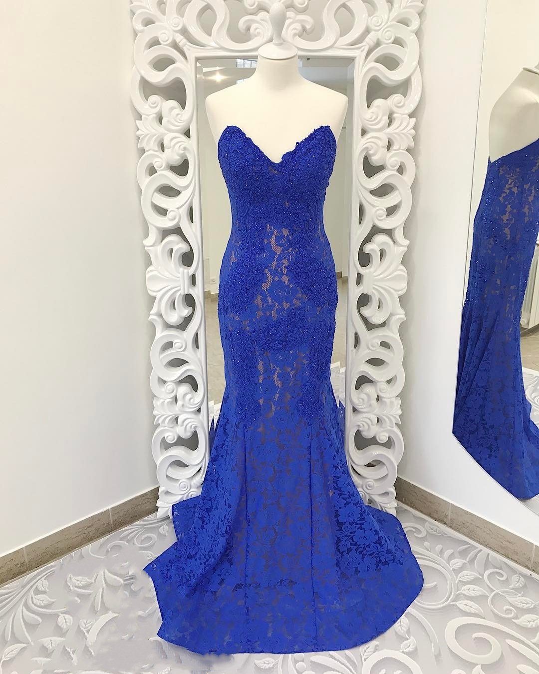 blue sleeveless applique prom dresses women dresses,strapless sweetheart lace evening dress,SB0387