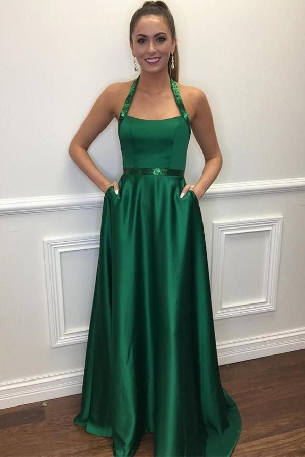 green sleeveless halter prom dresses women dresses,satin evening dress party dress,SB0398