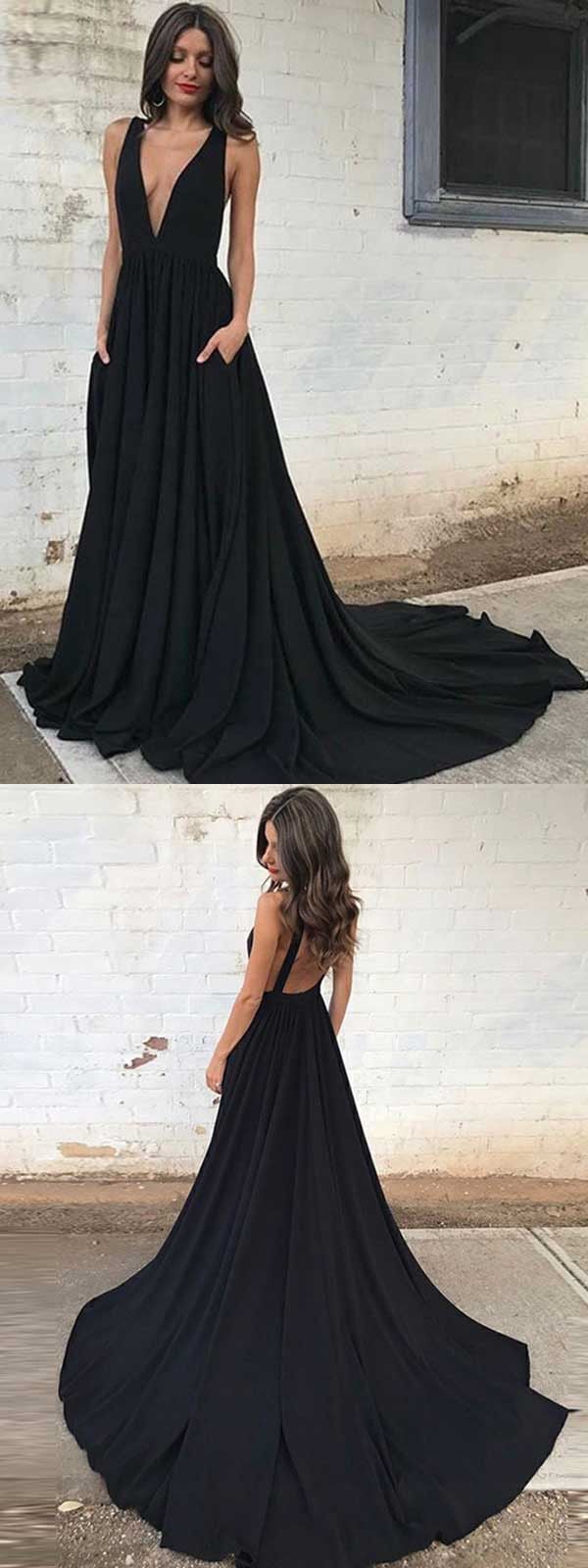 black sleeveless v-neck prom dresses women dresses,pocket backless satin evening dress,SB0425