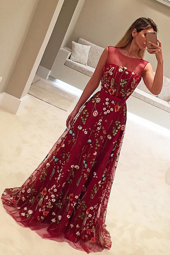red sleeveless lace prom dresses women dresses fanshion dresses,applique sheer-straps tulle evening dress,SB0428