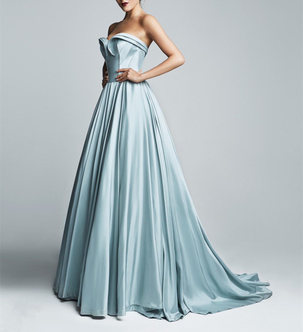 blue sleeveless strapless prom dresses women dresses,sweetheart satin evening dress,SB0435