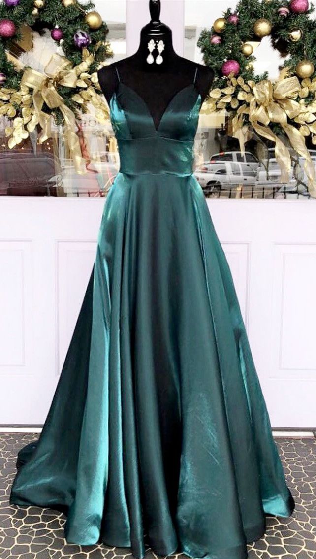 green sleeveless v-neck prom dresses women dresses,spaghetti-straps satin evening dress,SB0488