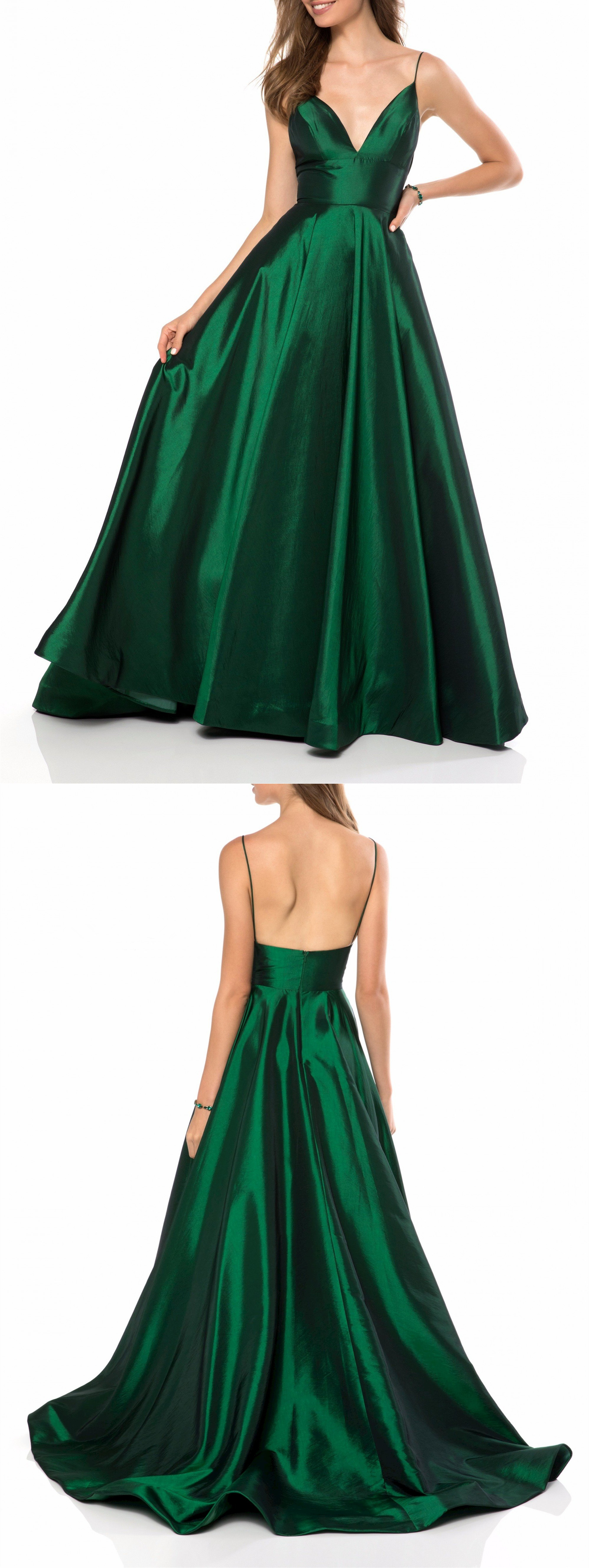 green sleeveless v-neck backless prom dresses,satin spaghetti-straps evening dress,SB0508