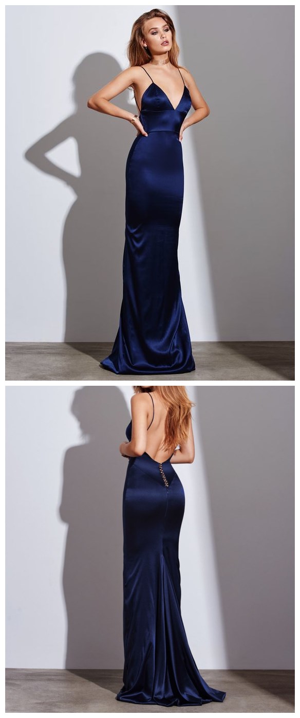 blue sleeveless spaghetti-straps prom dress fanshion dress,v-neck backless evening dress,SB0537