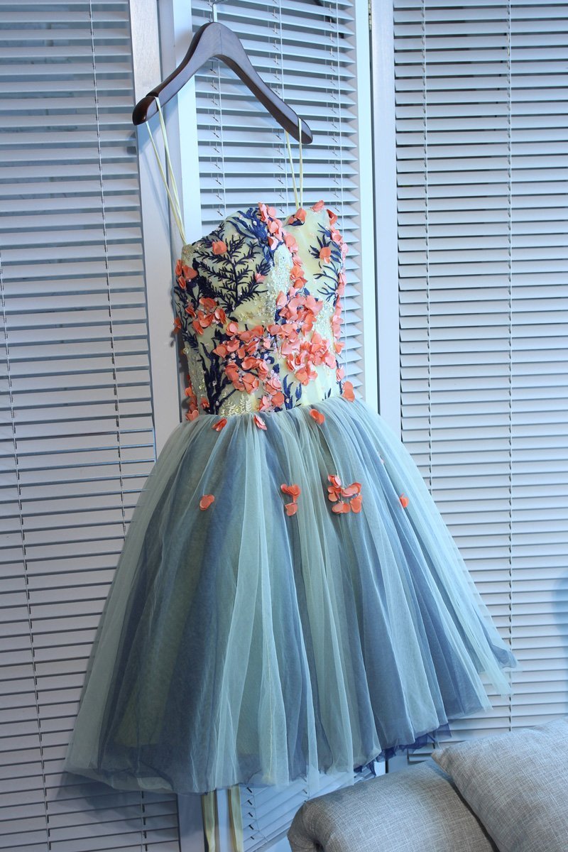 beauty sleeveless sweetheart full length fanshion dress,applique spaghetti-straps tulle homecoming dress,SB0249
