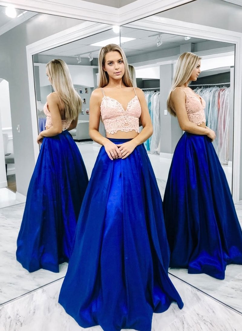 Cute V-Neck Pink Lace Bodice Prom Dress,Two Pieces Evening Dress,SB0641